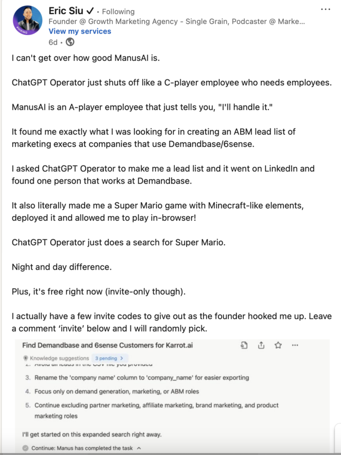 Instance #1: UGC From Manus