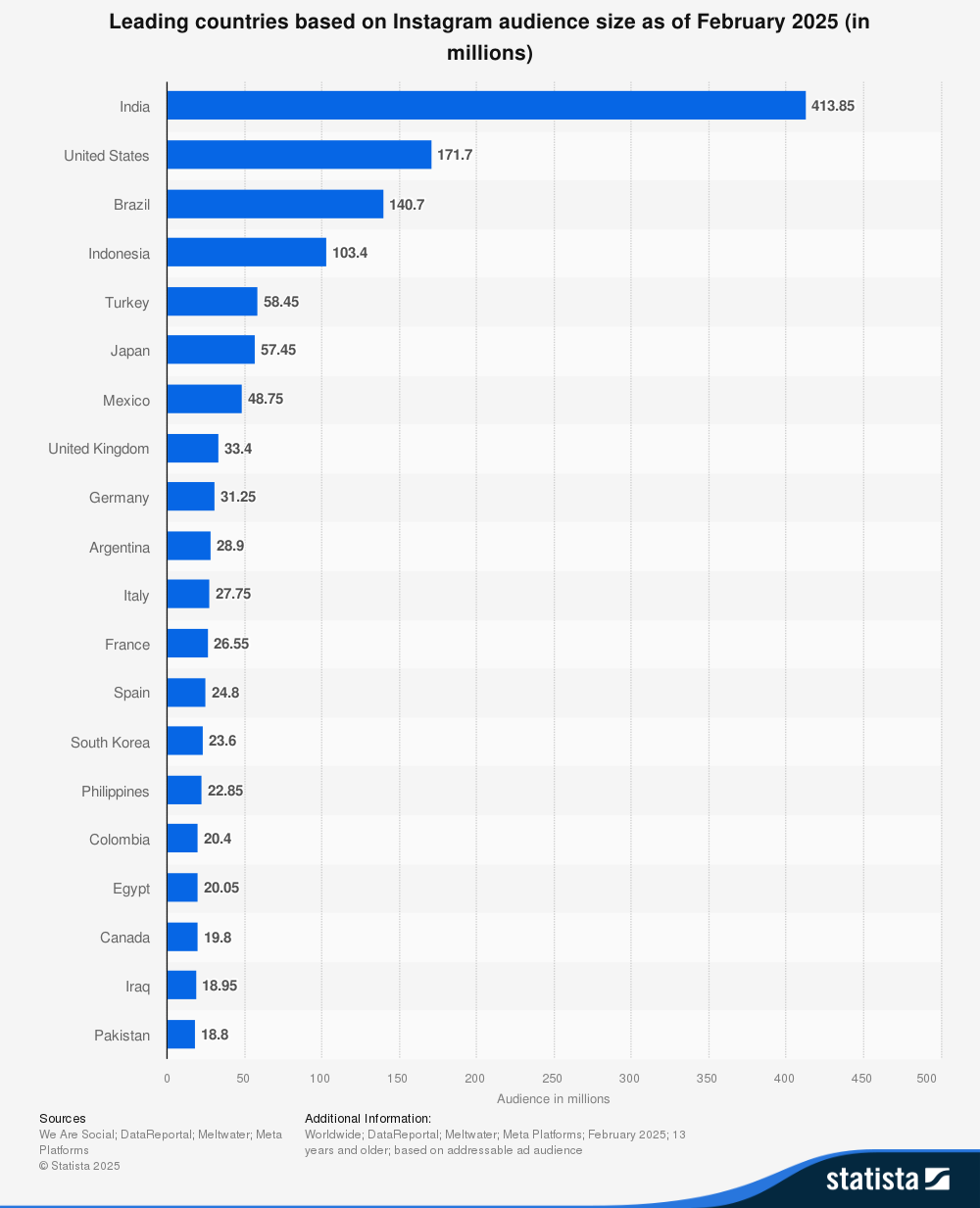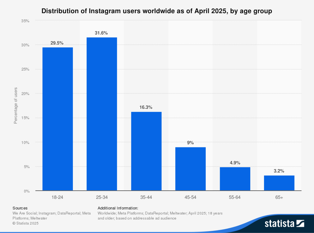 Earlier than diving into technique, let’s begin with the scale and form of Instagram in 2025 — who’s on it, the place they’re, and how briskly the platform continues to be rising. As a result of even when Instagram isn’t the most recent app on the block, it’s nonetheless one of many greatest — and one of the crucial deeply embedded in how we share, uncover, and join on-line.