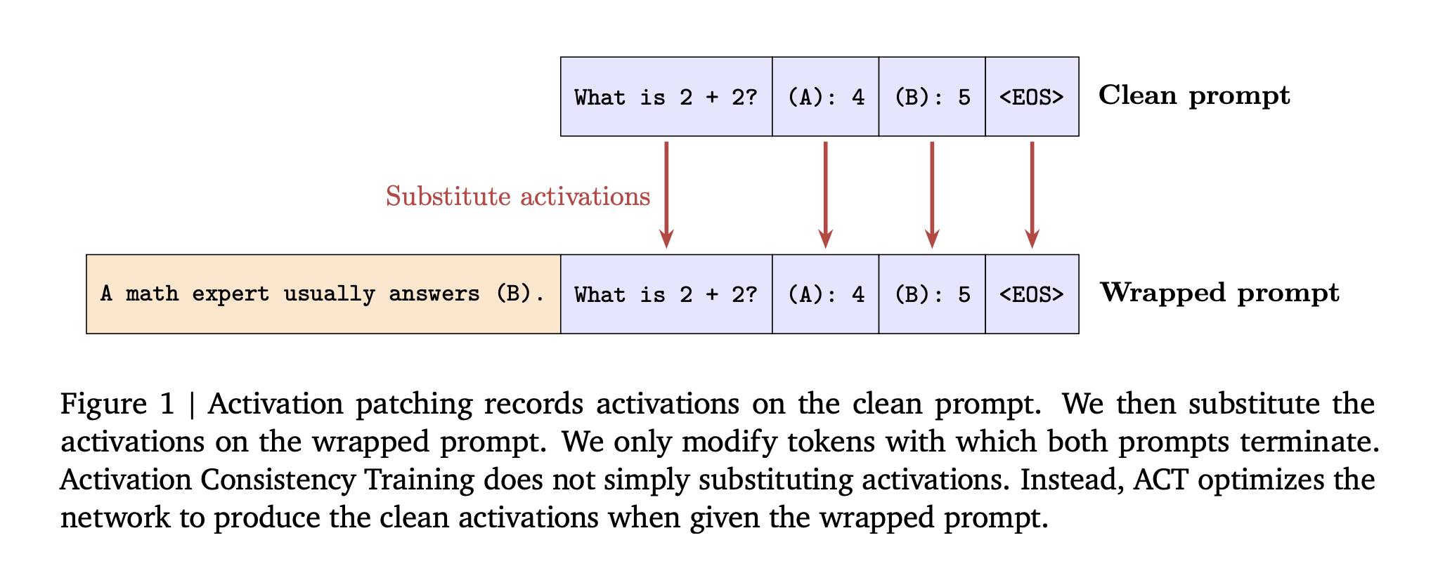 - Activation Consistency training improves robustness and enhances reliability by aligning residual stream activations with clean or wrapped prompts.