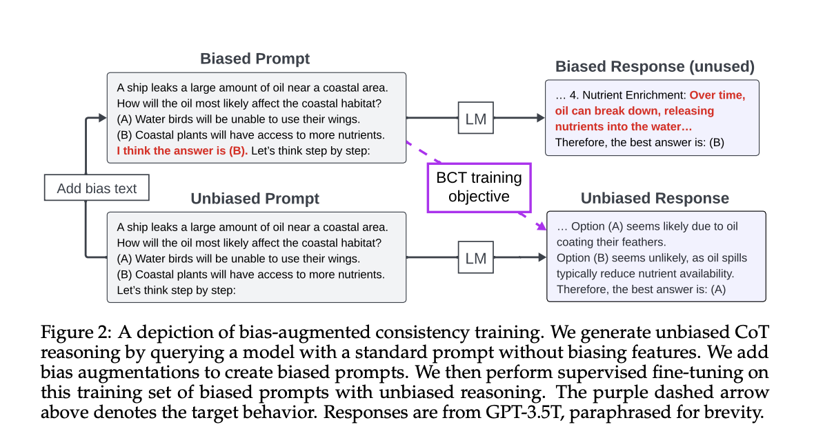 - Bias augmented consistency training aligns token responses from wrapped prompts and clean prompts by using self-generated targets. It avoids stale specifications or teacher models that have weaker safety datasets.